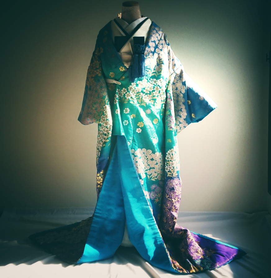 色打掛"ピーコックブルー揺れる小花"[IR010]