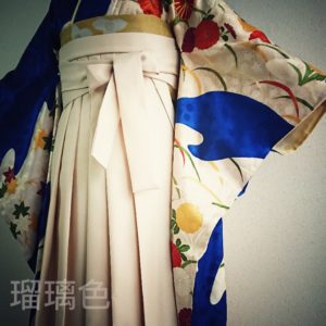 女袴-"レトロ"瑠璃色×ライトベージュ[ON006]